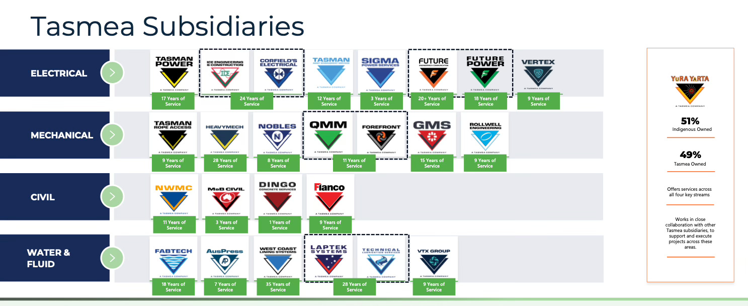 Tasmea currently owns 25+ specialist trade businesses that provide various essential services such as shutdowns and programmed maintenance, brownfield upgrades, and breakdown and repair. Tasmea’s end markets include mining, energy, and infrastructure. Although end markets can be somewhat cyclical, the company is less cyclical than one would expect and it is exposed to long duration tailwinds such as electrification and grid upgrades, renewable integration and transmission, aging infrastructure, and skilled labour shortages.